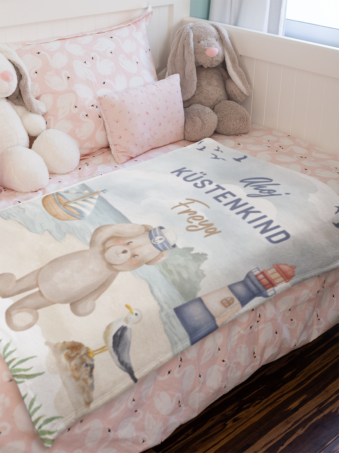 Babydecke mit Name, Spruch & Teddy – einfach zum Verlieben