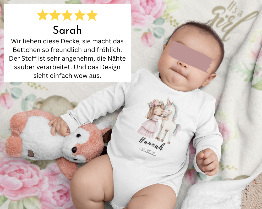 Einhornliebe zum Einkuscheln – Die Babydecke mit Namen & Herzklopfen-Garantie ⭐⭐⭐⭐⭐