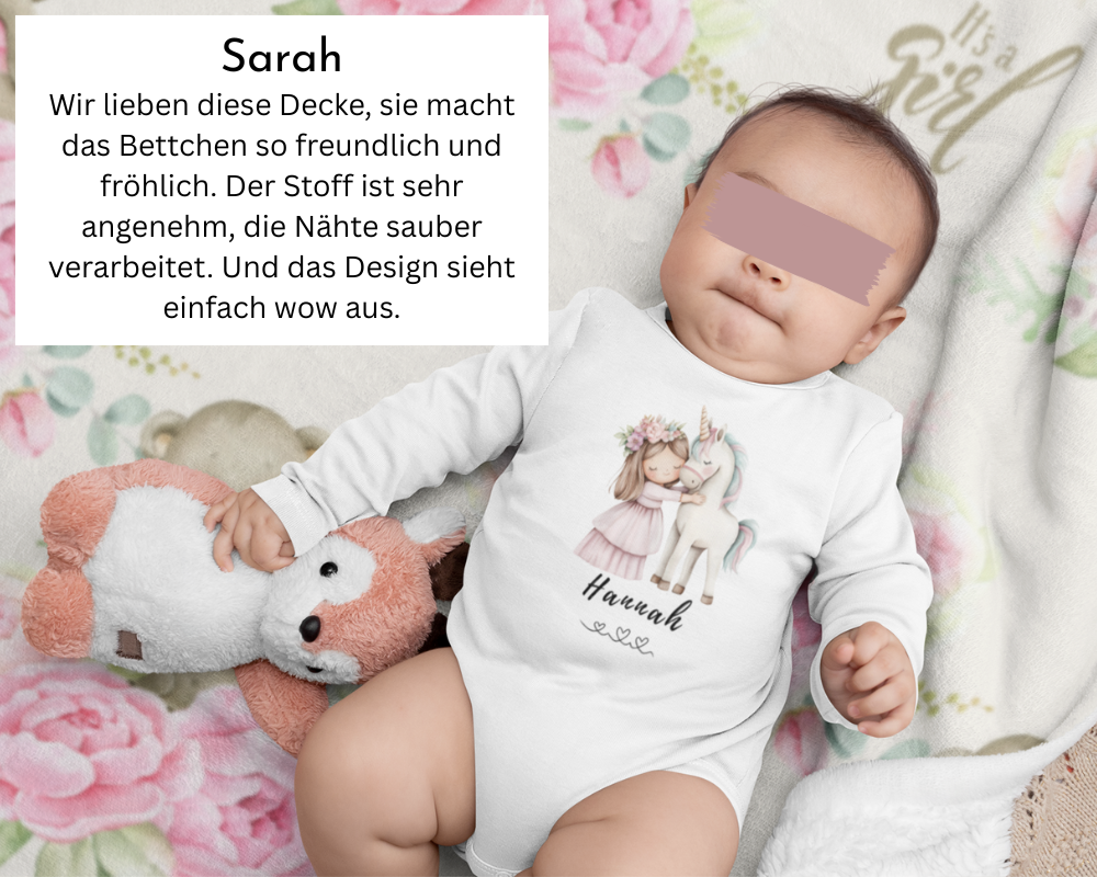 Einhornliebe zum Einkuscheln – Die Babydecke mit Namen & Herzklopfen-Garantie ⭐⭐⭐⭐⭐